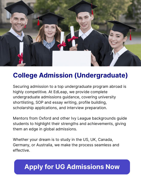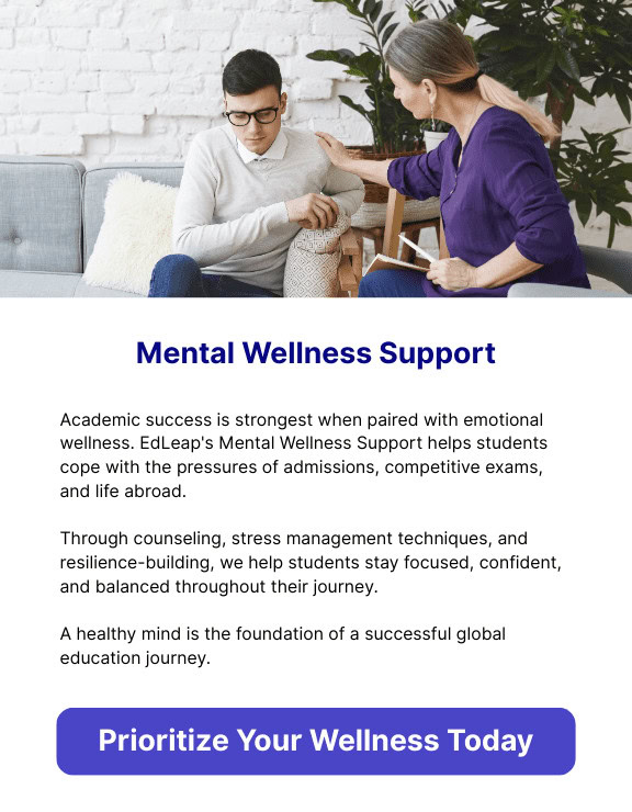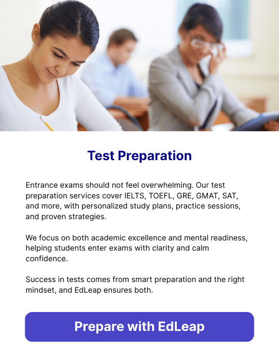 At EdLeap, we provide a comprehensive ecosystem of mentorship, admissions support, testpreparation, and wellness guidance for Indian students aiming to study at top universitiesworldwide. Every service is designed to keep students at the center of the journey, offeringclarity, confidence, and direction.